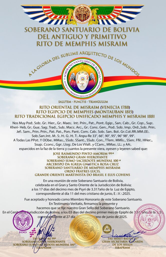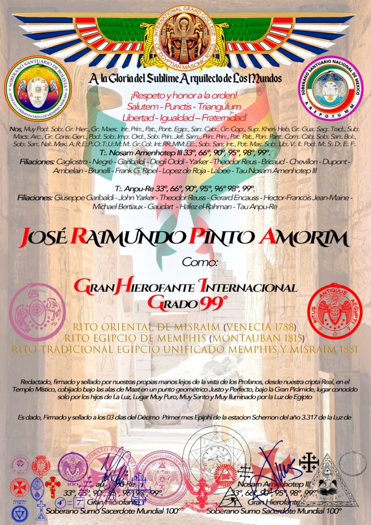 CARTA PATENTE- GRANDE ORIENTE MARTINISTA DO CHILE E PARA AMÉRICA LATINA